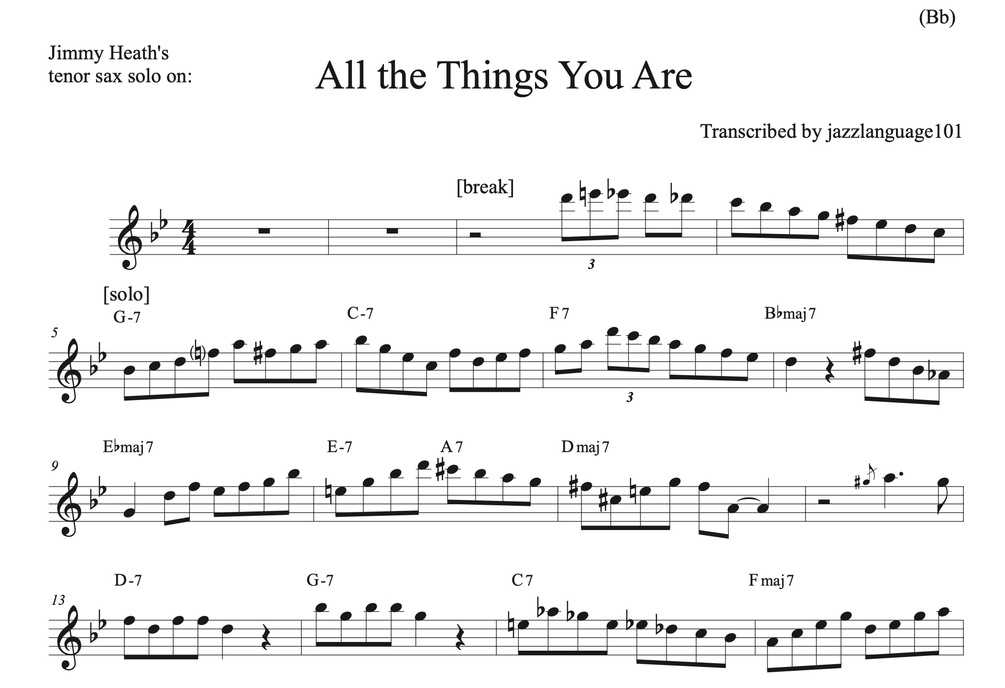 Jimmy Heath's solo transcription on 'All the Things You Are' (Bb)