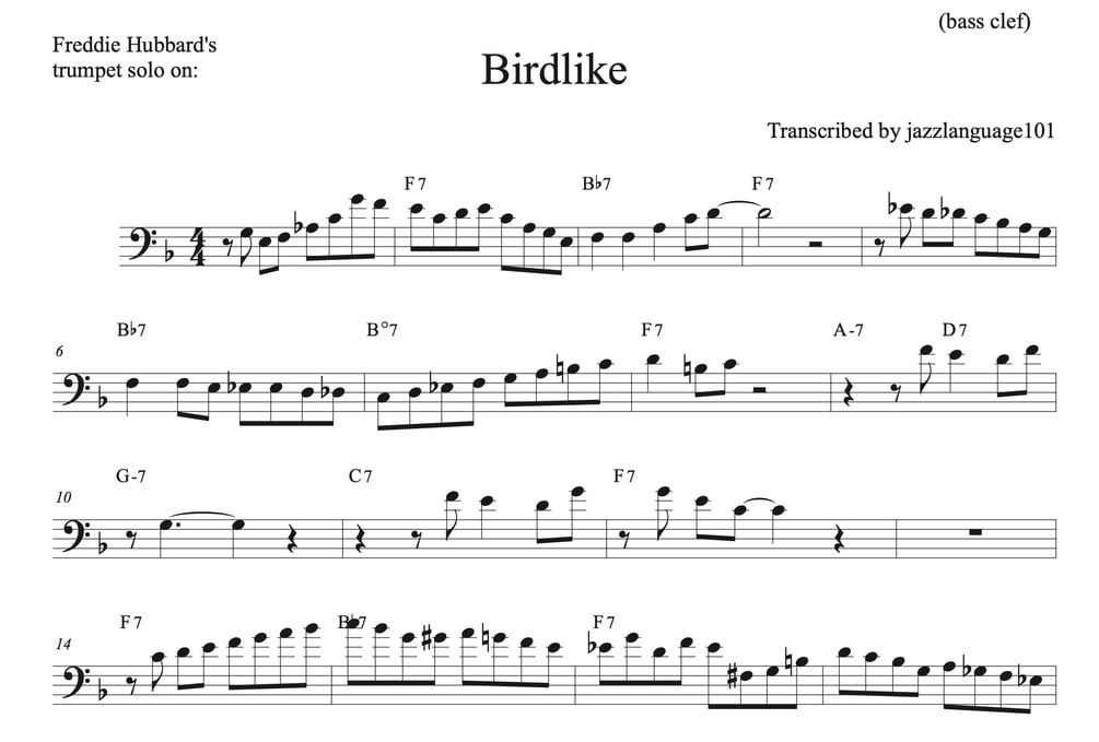 Freddie Hubbard's solo transcription on 'Birdlike' (bass clef)